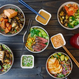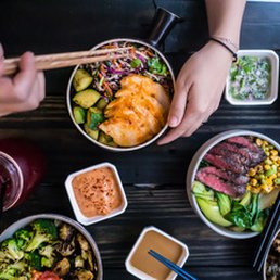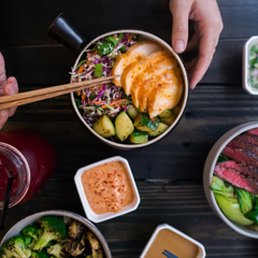 Food is good for a quick meal and some decent fusion options. The bowl is mainly a lot of rice on the bottom with two sides and a protein on top. Don't be fooled by the size of the bowl since it's most likely 60-70% rice and 30-40% everything else. Regardless it's a good portion size if you're not looking to stuff yourself. Service was fast and easy at the time we went and the ambiance was pretty casual. It's a good spot to go to after a workout or run.