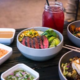 Customers rave about the flavorful dishes at Som Bo, with reviews mentioning favorites like the chili lime chicken bowl, the grilled steak bowl, and the edamame slaw. The fast service, casual ambiance, and generous portion sizes make it a great spot for a quick and satisfying meal.
