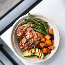 First time trying it after my coworker recommended it. I got the steak bowl . It was pretty flavorful. You get to pick 2 carbs , 1 cold side , 1 hot side and a protein . Very similar to chipotle and cava .